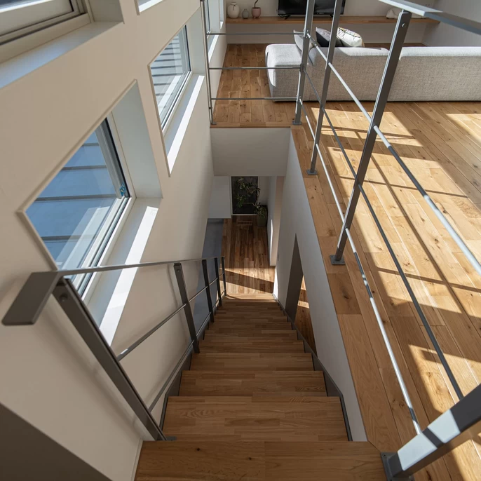 「家族との時間も大切にしつつ、個々の趣味も楽しみたい」 そんな想いから、この住まいづくりは始まりました。自然とリビングに家族が集まり、ほっとできる。それでいて、趣味に集中したいときには、ひとりで落ち着ける時間も大切にできる。こうしたご家族の想いや暮らし方に丁寧に寄り添い、建築家が空間構成や動線を一から設計しました。